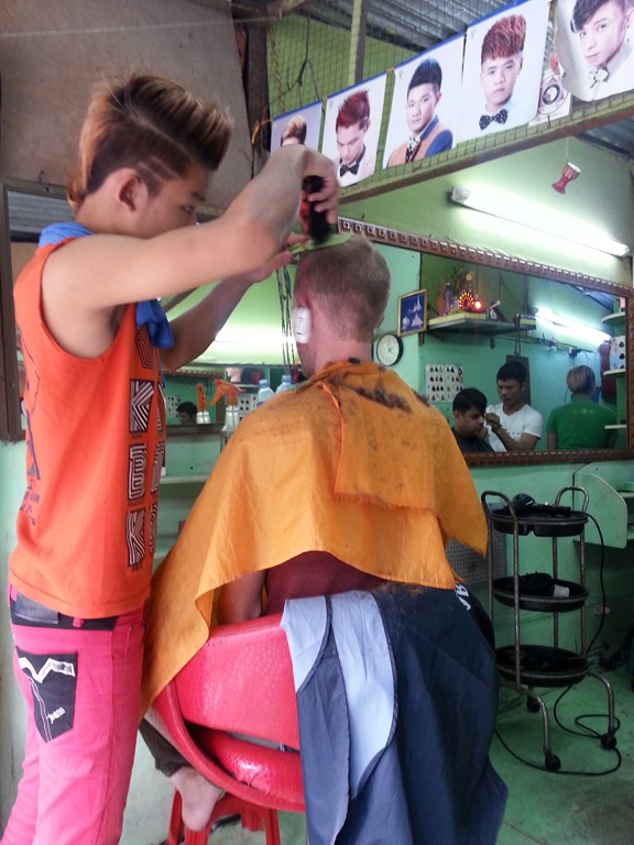 Hip Hairstylists. The hosts at our second hotel hooked us up with a haircut place about a block away. They charged $1 for a haircut, and although it wasn’t the best haircut Sam got, the guy who gave it to him probably had the best hair cut of anyone that cut Sam’s hair.
